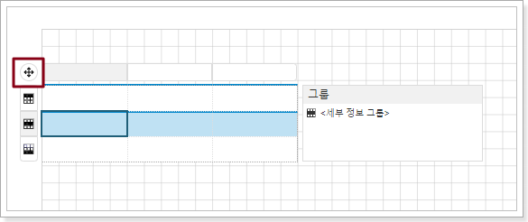 테이블에서 셀을 선택한 다음 왼쪽 위 모서리에 나타나는 십자 기호를 클릭하여 전체 테이블을 선택합니다(테이블 및 거리 테이블 이외의 컨트롤을 클릭하여 전체 구성 요소를 선택합니다).