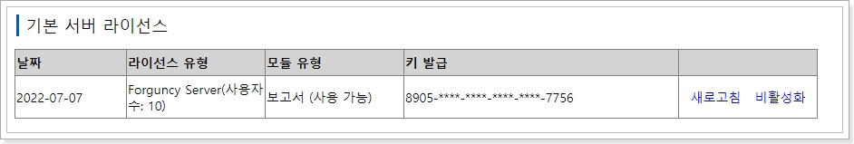 보고서 라이센스는 기본 서버 라이센스에 포함되어 있습니다.