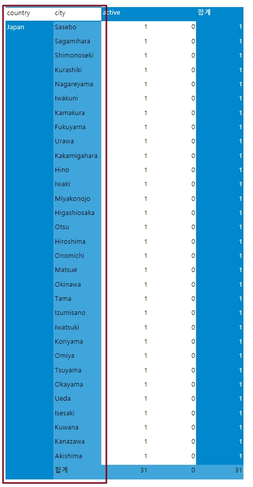 보고서를 미리 보면 테이블릭스의 행이 다차원 그룹화 통계임을 알 수 있습니다.