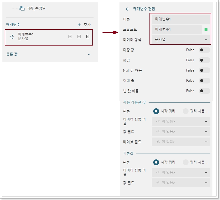 매개 변수 이름: 매개 변수 인식에 사용할 보고서 매개 변수의 이름을 설정합니다.