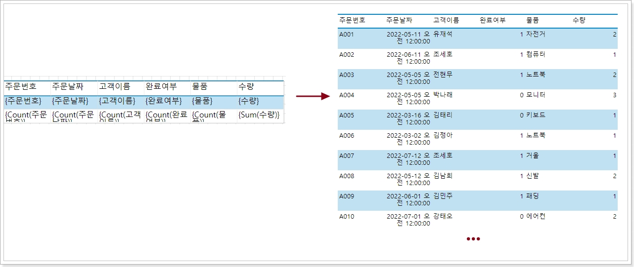 RDL 보고서는 데이터 집합의 모든 데이터가 표시될 때까지 미리 보기 또는 런타임에 구성 요소를 확장하여 데이터 페이징을 자동으로 구현하고 최종 페이지 레이아웃은 표시할 데이터의 양에 따라 달라집니다.