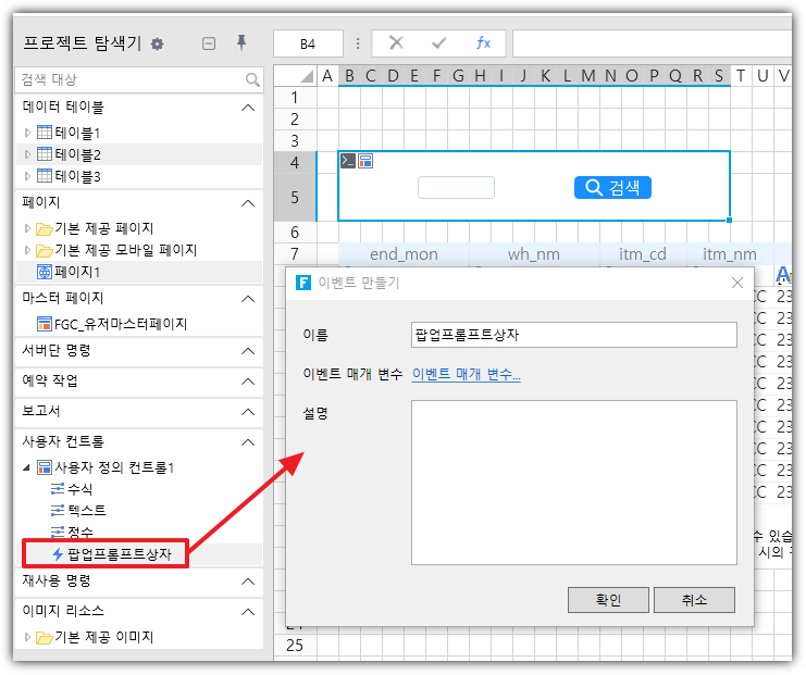 예를 들어 사용자컨트롤를 만들고 "팝업 프롬프트 상자" 이벤트를 만듭니다.