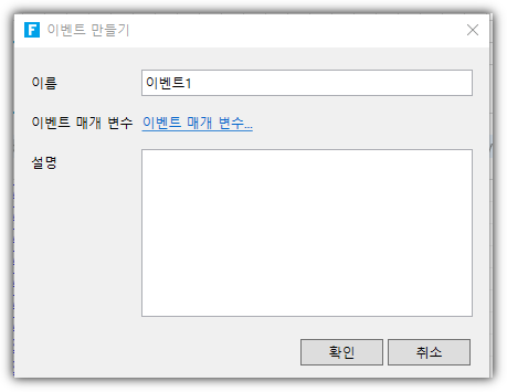 | 이벤트 매개변수 | 팝업 대화 상자에서 매개변수를 추가하려면 "이벤트 매개변수" 하이퍼링크를 클릭하십시오. 이 매개변수는 이벤트 명령에서 사용할 수 있습니다.                                                                                                                        |