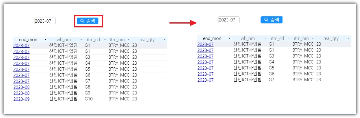 페이지를 실행합니다. 사용자 정의 컨트롤의 텍스트 상자에 end_mon을 입력한 후 검색 버튼을 클릭하여 주문을 검색합니다.