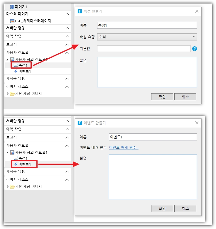 사용자 정의 컨트롤 만들기 페이지를 편집합니다. 사용자 정의 컨트롤 만들기 페이지에서의 작업은 일반 페이지에서의 작업과 유사하며 일반 페이지와 마찬가지로 사용자 정의 컨트롤 만들기 페이지를 디자인할 수 있습니다.