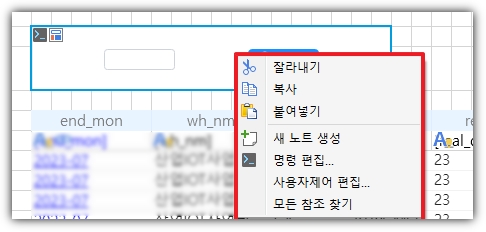 사용자 정의 컨트롤 컨테이너 셀을 마우스 오른쪽 버튼으로 클릭하고 오른쪽 클릭 메뉴에서 "사용자제어 편집"을 선택하여 사용자제어 페이지로 바로 이동합니다.