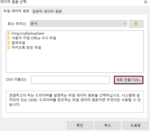 데이터 원본 선택에서 새로 만들기를 클릭합니다.