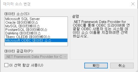 데이터 소스를 Microsoft ODBC 데이터 원본으로 선택합니다.