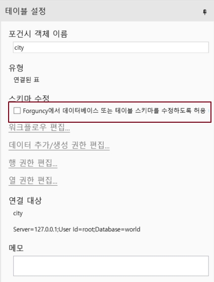 [확인]을 클릭하여 테이블을 가져옵니다. 테이블을 열면 테이블 설정에서 해당 형식이 아웃리치 테이블인 것을 볼 수 있습니다.