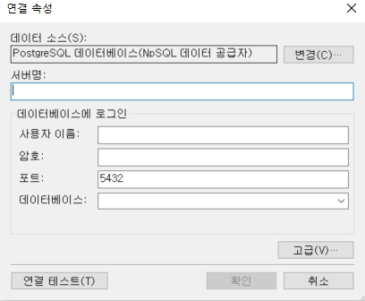 데이터 소스를 [PostgreSQL 데이터베이스]로 선택합니다.