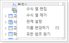 수식 필드를 편집, 삭제 및 연결할 필드 작업을 설정할 수 있습니다. 공식 필드를 두 번 클릭하여 공식 필드 편집 대화 상자를 엽니다.