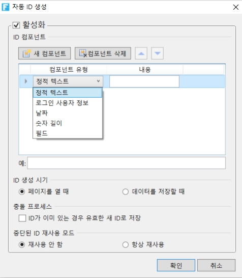 [자동 ID 생성] 대화상자에서 활성화를 체크하여 자동 ID 생성을 설정합니다.