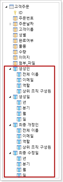 테이블을 만들면 일부 필드인 기본 제공 필드가 자동으로 생성됩니다.