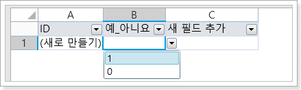 데이터를 추가할 때 입력 상자에서 0 또는 1을 선택하지만 드롭다운 버튼 클릭합니다.