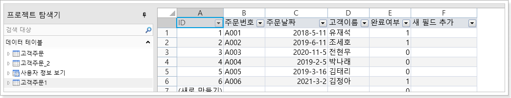 [확인]을 클릭하면 Access 파일의 데이터가 포건시로 가져옵니다.