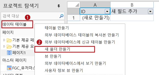 데이터 테이블 기본 작업에는 데이터 테이블 이름 바꾸기, 테이블 폴더 만들기, 데이터 테이블 이동, 데이터 테이블 삭제가 포함됩니다.
