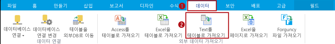 리본 메뉴 모음에서 [데이터]>[Text를 테이블로 가져오기]를 선택합니다.