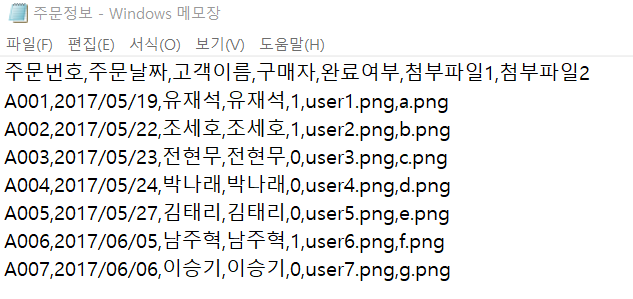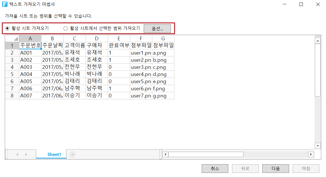위의 그림에 있는 텍스트 파일을 이용하여 데이터 테이블 만드는 방법은 아래와 같습니다.