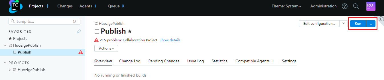 TeamCity를 설치하고 TeamCity 서버 서비스와 TeamCity 에이전트 서비스를 구성하여 관리 권한이 있는 일반 사용자로 실행되도록 합니다(시스템 권한을 사용하지 않음).