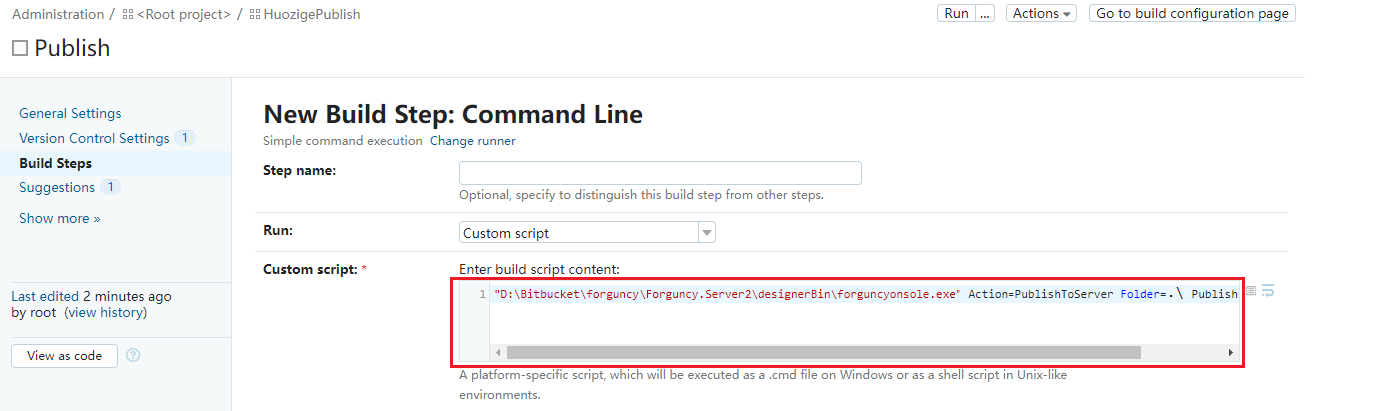 빌드 단계를 구성합니다.