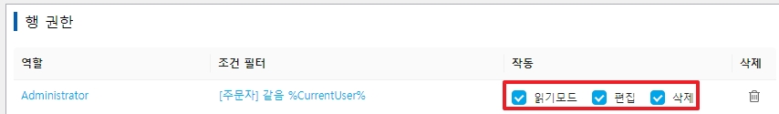 보기, 편집 및 삭제를 포함하여 허용되는 작업을 설정합니다.
