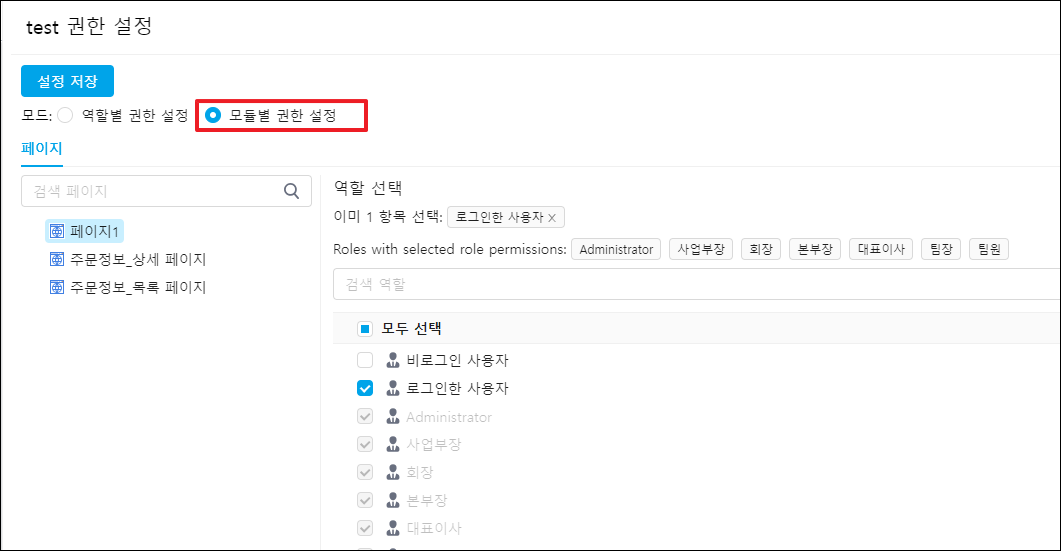 ### 모듈별 권한 설정&#x20;
