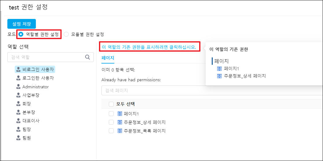### 역할별 권한 설정&#x20;