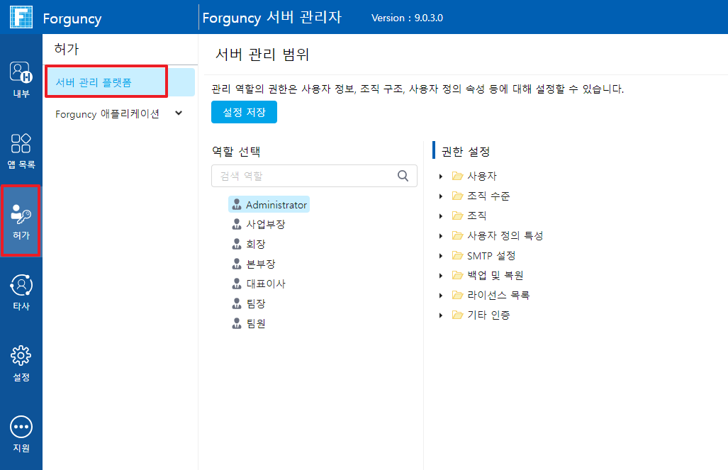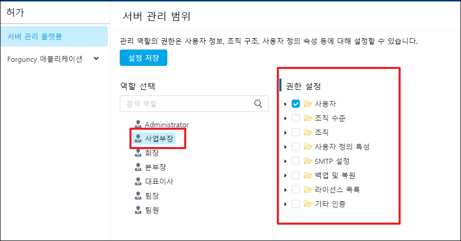 ### 역할 권한 설정&#x20;