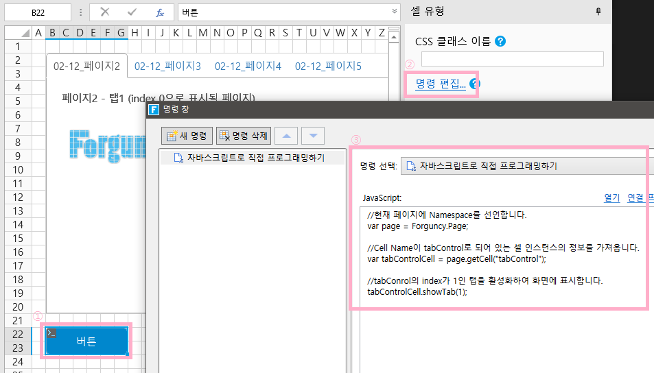 tabControlCell.showTab(1);Forguncy 사용 예제