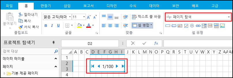 셀을 페이지 탐색 유형으로 설정하여 테이블이 리스트뷰의 레코드를 페이징하도록 합니다. 페이지  탐색 버튼은 다음 그림과 같습니다.