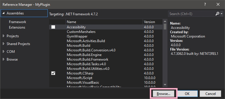 플러그인 개발 환경을 생성하신 위치에서 .csproj 파일을 더블 클릭하시면 Visual Studio에서 프로젝트가 열립니다.