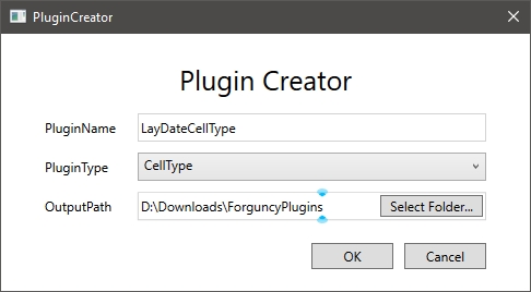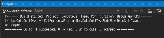 프로젝트 이름(Project Name)은 ‘LayDateCellType’으로 정의하시고, 플러그인 유형(PluginType)은 ‘셀 유형(CellType)’, 출력 경로(Output Path)는 플러그인을 작업하실 경로로 입력해 주십시오.