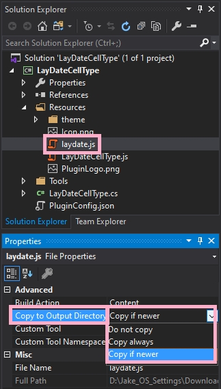 솔루션 탐색기에서 Resource 폴더를 열고 laydate.js 파일을 선택하신 후, 아래 특성창에서 “출력 디렉토리로 복사”규칙을 “최신인 경우 복사”로 수정하십시오.