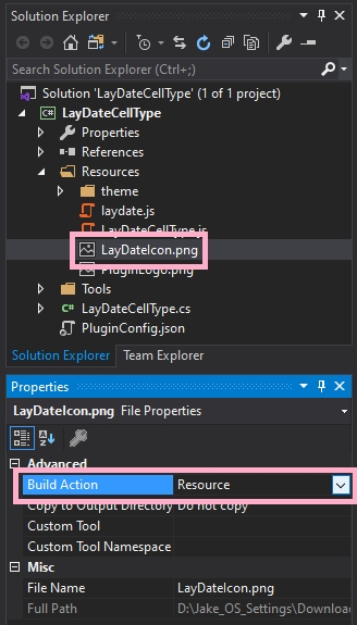 LayDateCellType.cs 파일을 열어 아이콘의 위치 지정하는 부분에 새 아이콘의 이름으로 변경해 주십시오.