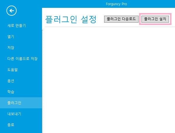포건시를 실행하시고 「파일 > 플러그인」으로 이동하셔서 “플러그인 설치”를 클릭합니다.