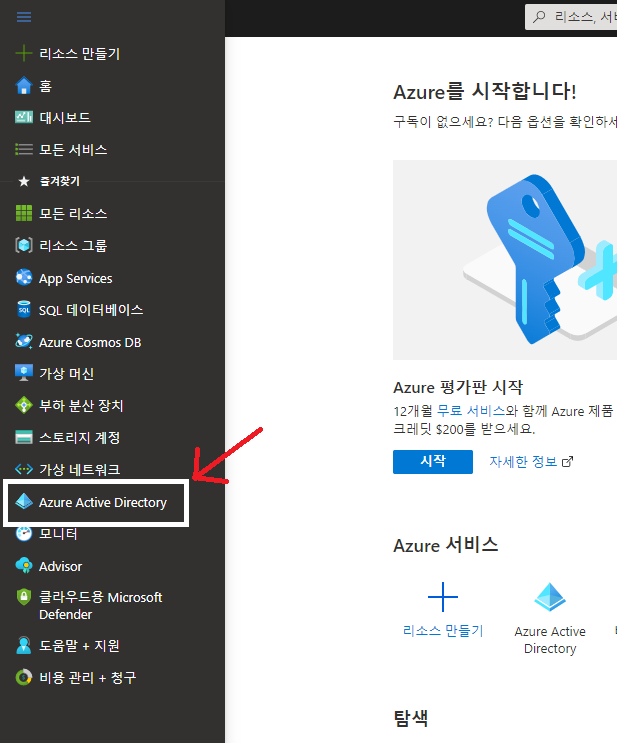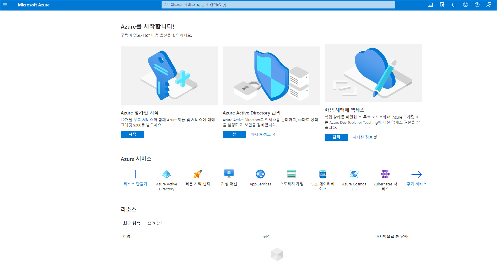 1. Azure 열기 : <https://portal.azure.com/#home>