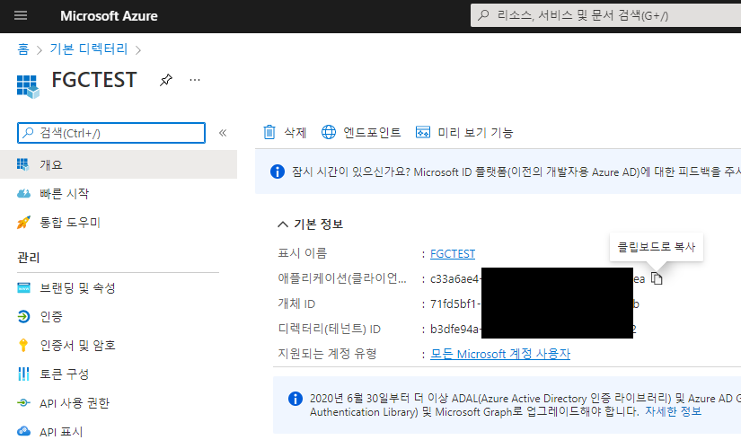 &#x20;(2) 디렉터리(테넌트) ID - Directory(Tenant)ID