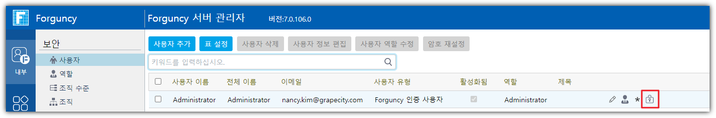사용자 목록에서 사용자의 행 오른쪽을 클릭합니다.![]()