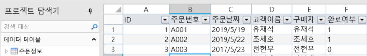 종 테이블인 주문 상세 정보 테이블을 두 번 클릭하면 테이블이 열립니다.