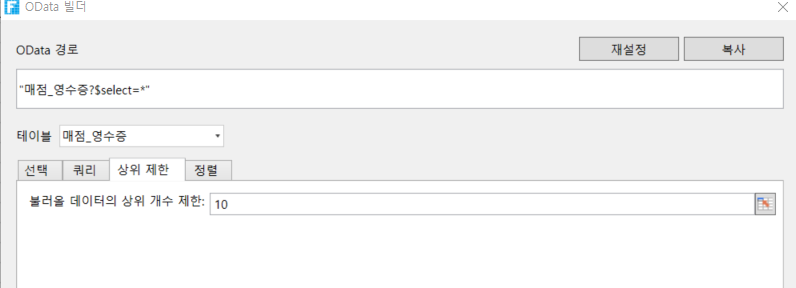 OData 매개 변수 설정 - 상위 제한