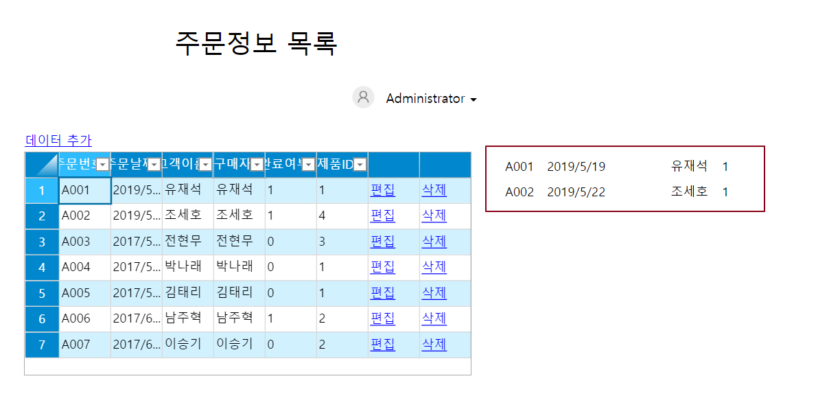 실행 후 브라우저에서 완료된 처음 주문에 대한 레코드를 볼 수 있습니다.