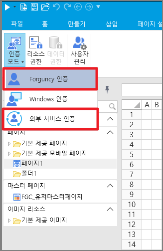 인증 모드가 다른 경우 내장 페이지가 다르게 표시됩니다.