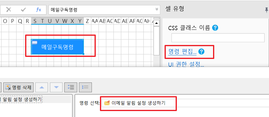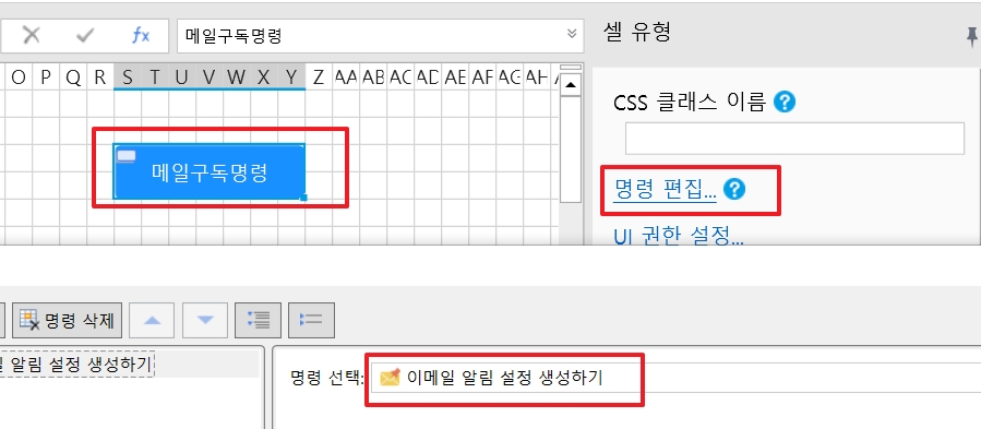 페이지에서 "메일 구독 명령" 버튼을 설정합니다. 이메일 구독 명령 설정에 대한 자세한 내용은 알림 명령 - 이메일 구독 명령 을 참조하십시오
