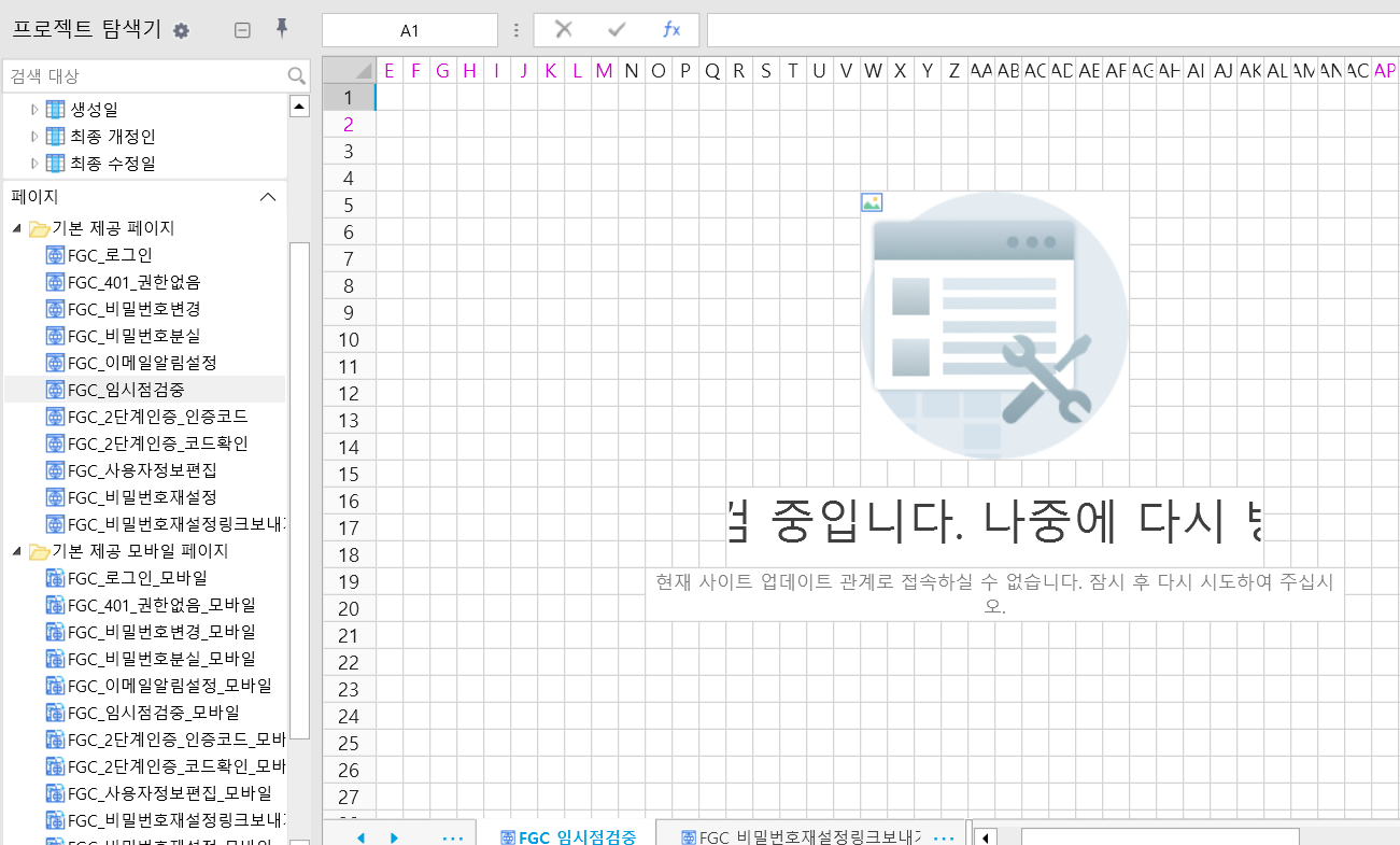 서버를 일시 중지한 후 애플리케이션을 다시 방문하면 "FGC\_임시"점검 중    이지로 리디렉션됩니다.
