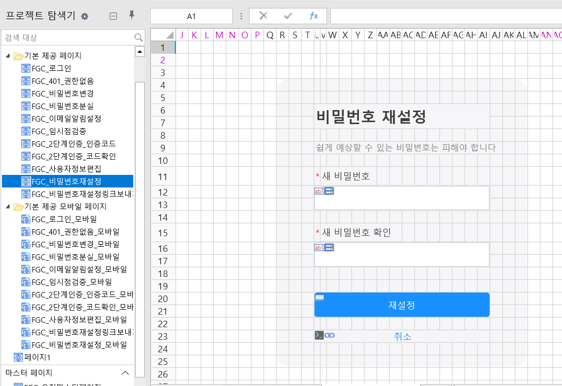 <figure><img src="https://content.gitbook.com/content/kr3K95OpVnkhRrSKF3Qh/blobs/CvZ9dPQziqELrxBRd0Ug/image.png" alt=""><figcaption><p>비밀번호재설정 화면 </p></figcaption></figure>