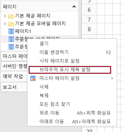 브라우저의 제목 표시줄에 표시되는 이름입니다. 페이지 이름을 마우스 오른쪽 버튼을 클릭하고 브라우저 표시 제목 설정을 선택할 수도 있습니다.