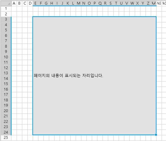 [크기 조정 시]을 클릭하면 페이지 자리 표시 공간이 파란색 테두리로 둘러싸여 파란색 테두리의 네 모서리를 드래그하여 크기와 위치를 조정합니다.