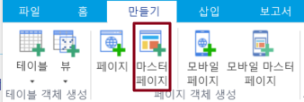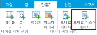 방법 1. 리본 메뉴 모음에서 [만들기]>[모바일 마스터 페이지] 택합니다.