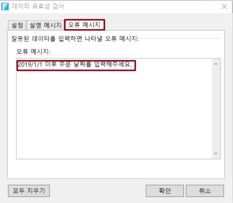 잘못된 데이터를 입력할 때 표시되는 오류 메시지입니다.