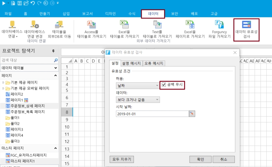 웹 페이지에서 양식을 제출할 때 양식의 필수 항목의 유효성을 검사해야 하는 경우가 많습니다. 포건시에서 데이터 유효성 검사를 설정하여 양식의 필수 항목을 확인할 수 있습니다.